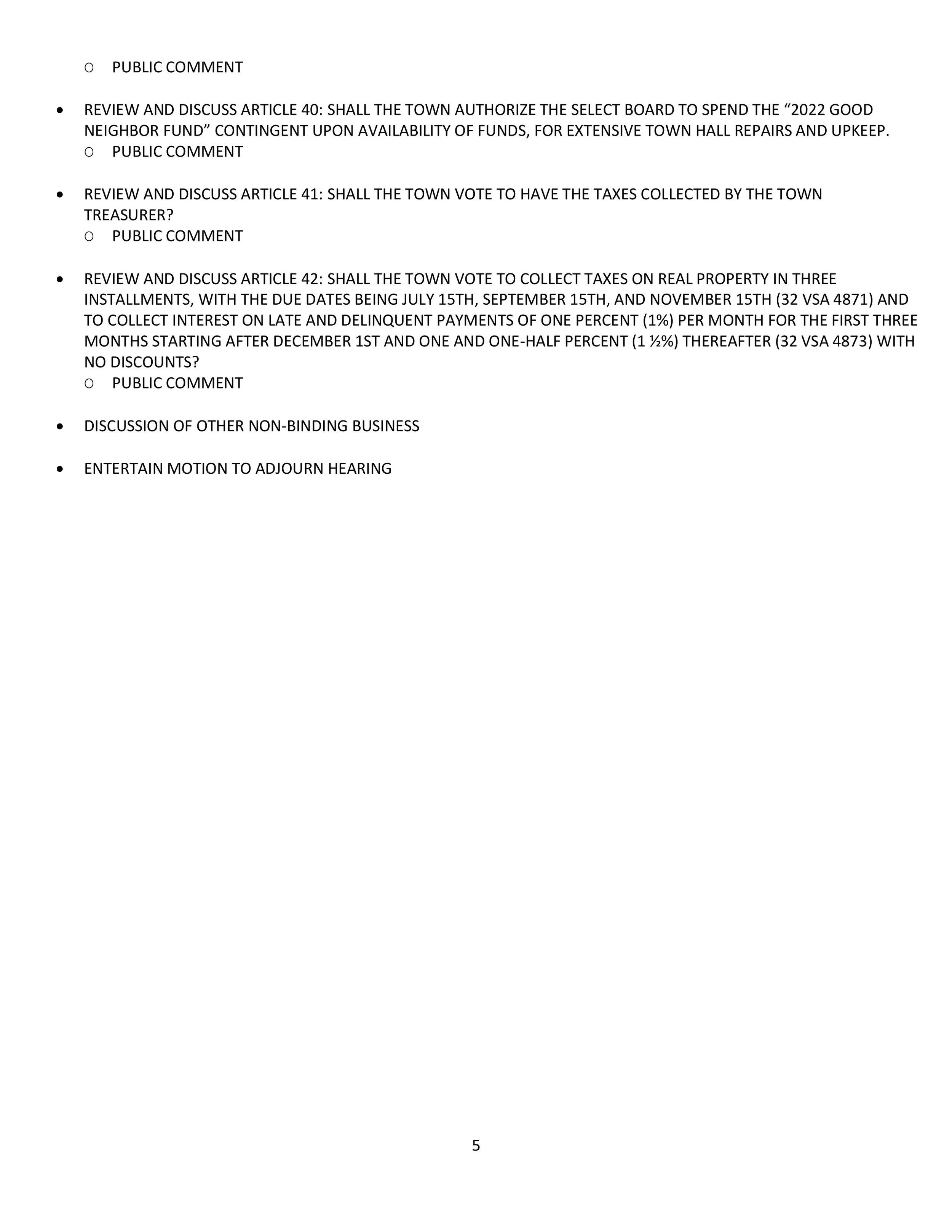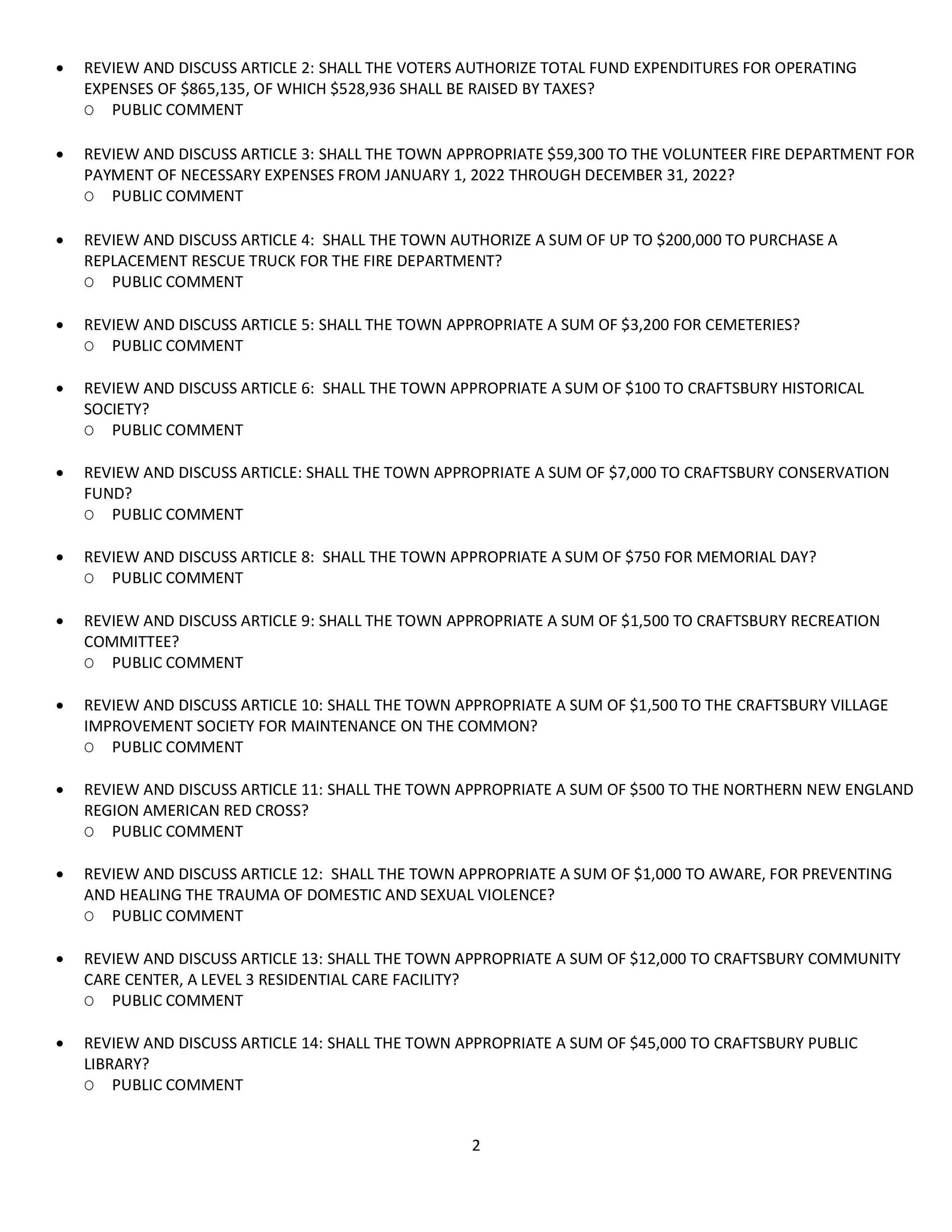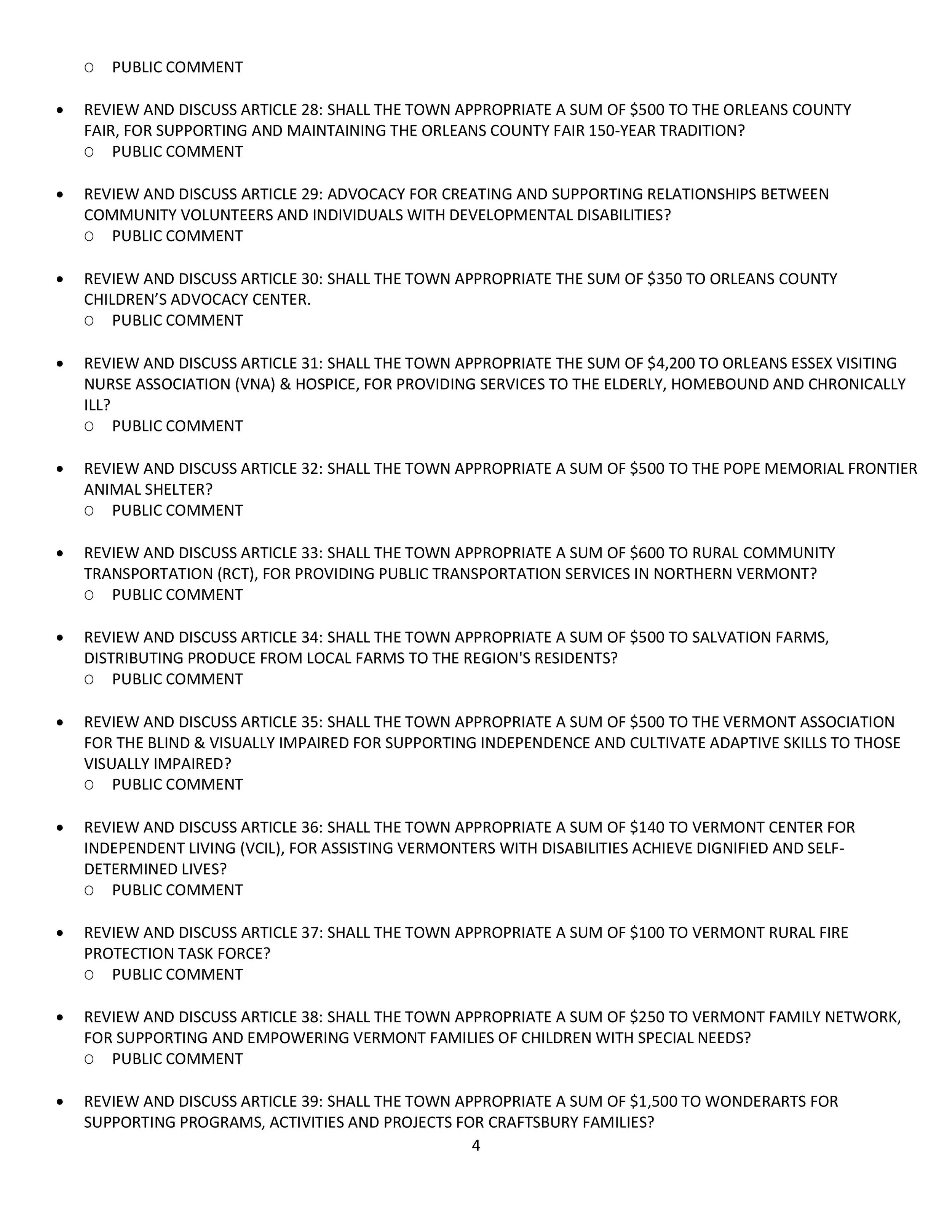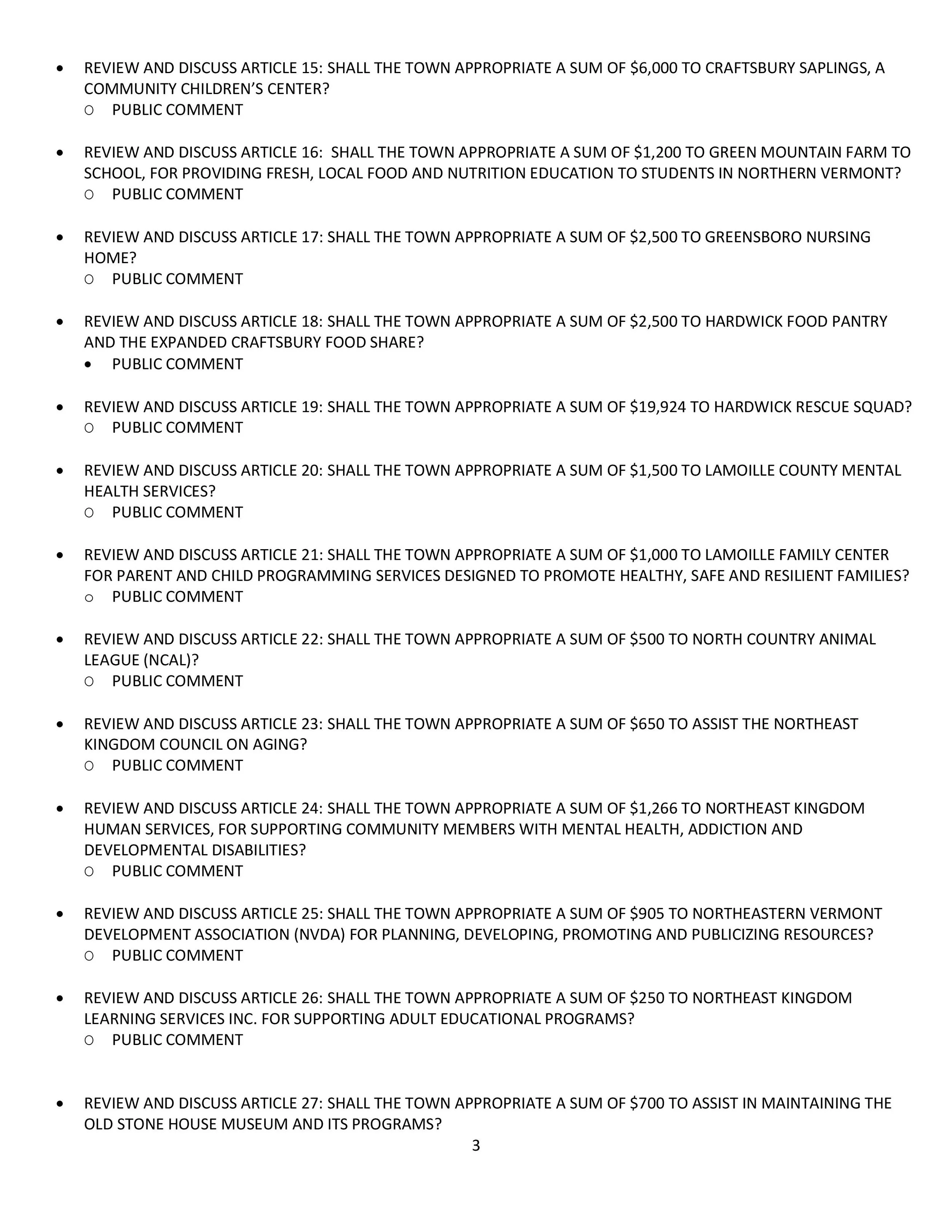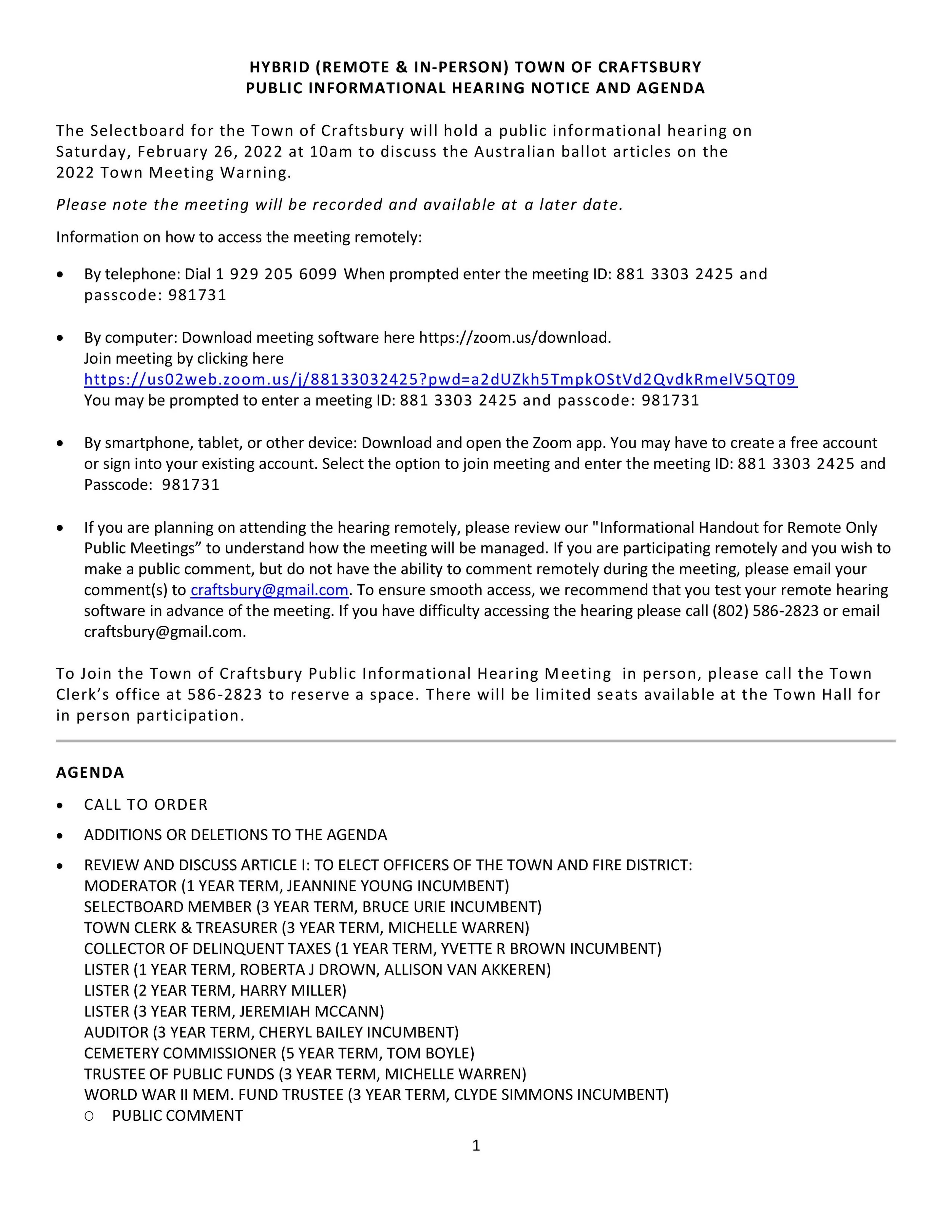 Craftsbury Town School District PUBLIC INFORMATIONAL HEARING ON THE FY23 BUDGET